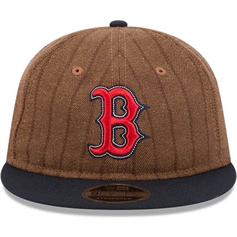 Gorra plana marrón y azul marino ajustable 9FIFTY Retro Crown Wool Pinstripe de Boston Red Sox MLB de New Era